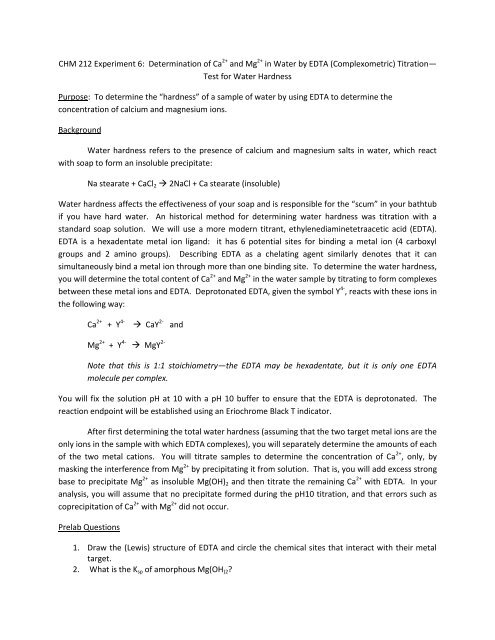 Chm 212 Experiment 6 Determination Of Ca2 And Mg2 In Water